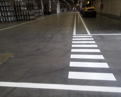 Pre spoločnosť Plzeňský Prazdroj sme vykonali testovanie značenie logistického prevádzky vysoko odolným materiálom. Vzhľadom k nie celkom kvalitným podlahám zákazníkovi skoršie značenia spĺňalo štandardy iba niekoľko týždňov.