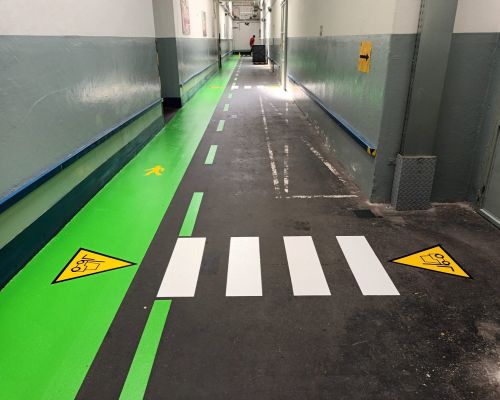 Prechody, desiatky podlahových značiek, plošné nátery