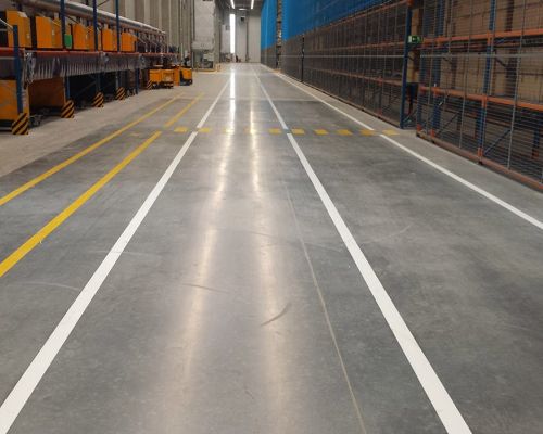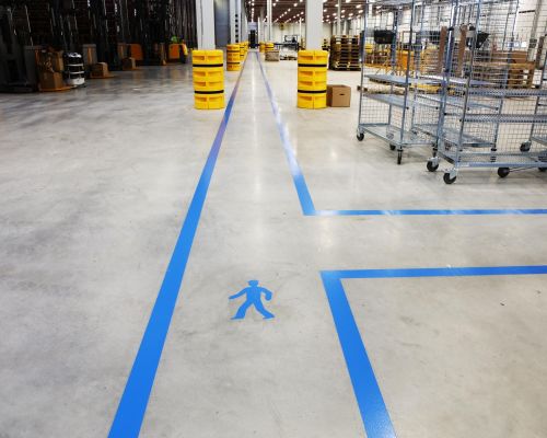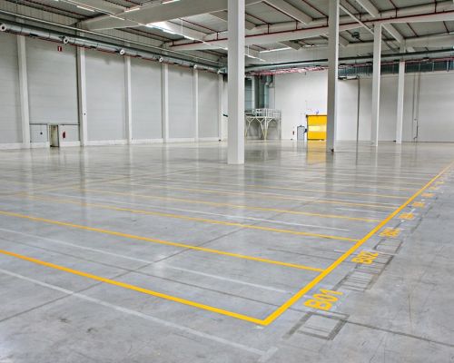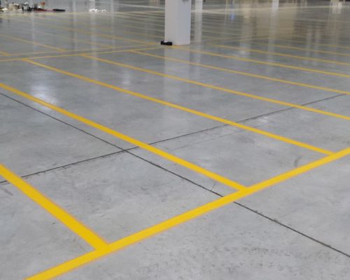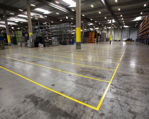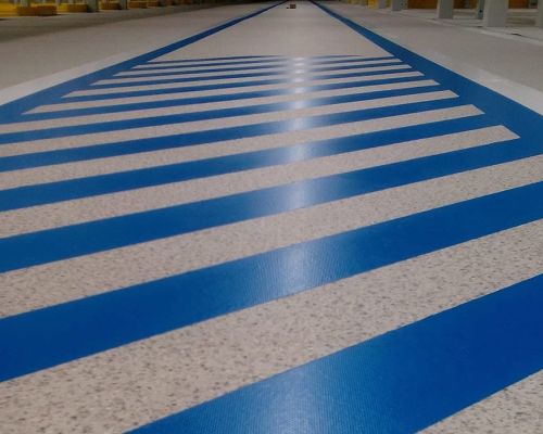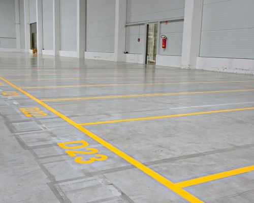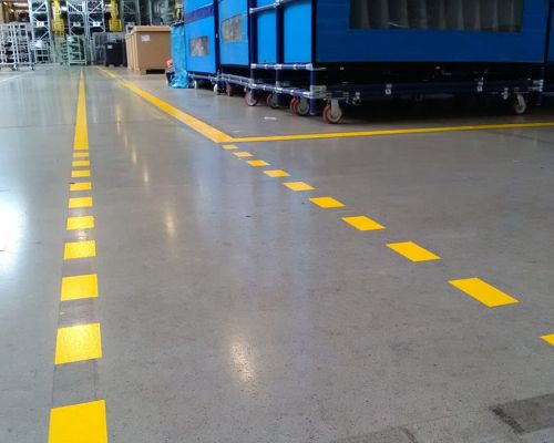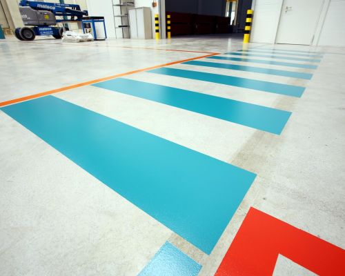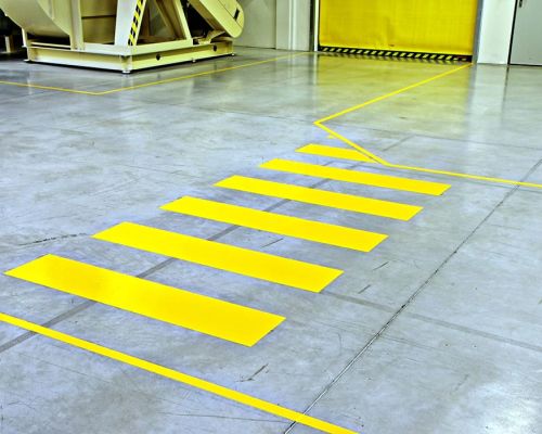 Značenie podlahy je dôležitou súčasťou bezpečnosti a organizácie na priemyselných pracoviskách. Používa sa na vizuálne označenie zón, trás a iných kľúčových oblastí, čo uľahčuje orientáciu a zabezpečuje dodržiavanie bezpečnostných pravidiel. Používa sa hlavne v halách, skladoch, dielňach alebo na výrobných linkách, kde je potrebné efektívne kontrolovať pohyb ľudí a strojov.