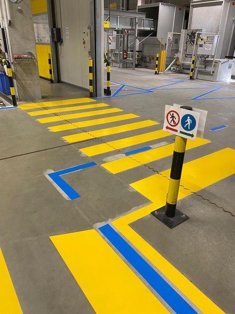 Zadanie zákazníka:Komplexná obnova podlahového značenia výrobných a logistických prevádzok vrátane odstránenia pôvodného značenia metódou presného brúsenia