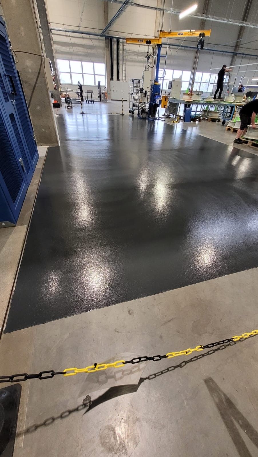 Obě skupiny, které se podílely na úpravě naší podlahy výborně spolupracovali a komunikovali ať už při příjezdu a předání si vstupních informací týkajících se zaškolení v našem provozu, dále pak v průběhu samotné realizace – co a kdy bude za sebou následovat + jaké technologické časy podlaha potřebuje atd.