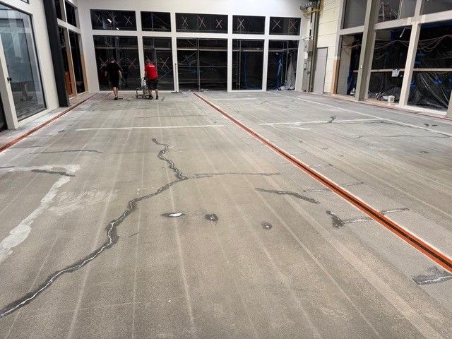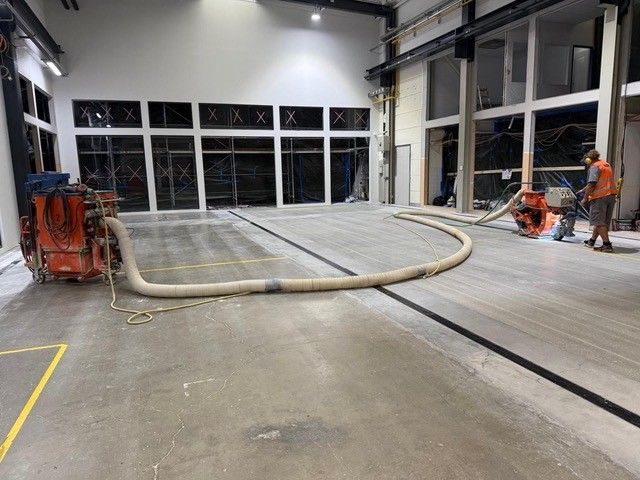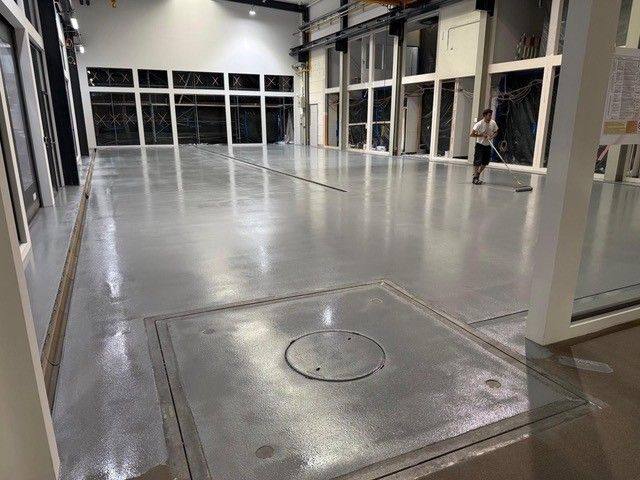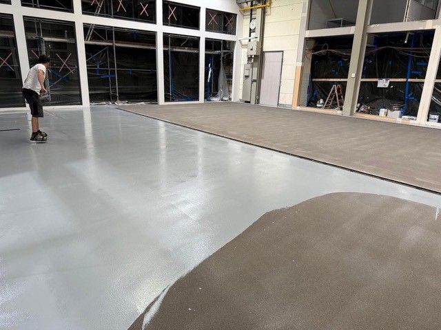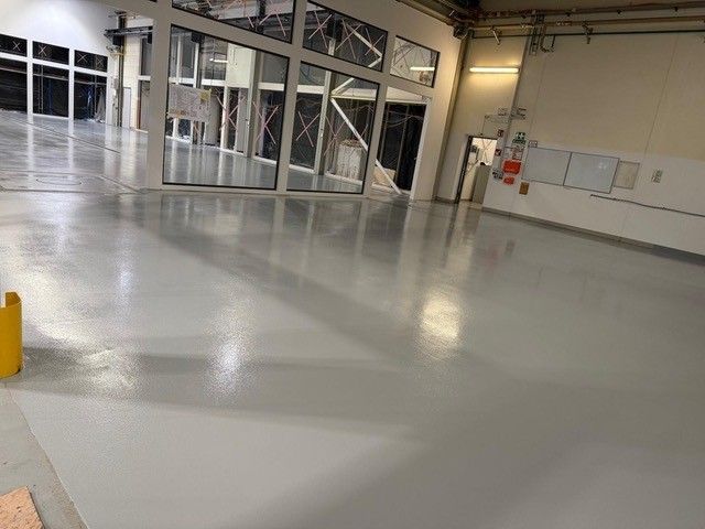 Zadanie zákazníka:Zo starej betónovej podlahy vytvoriť úplne nový povrch. Riešením bola epoxidová stierka v protišmykovom prevedení. Odtieň šedá RAL7001.