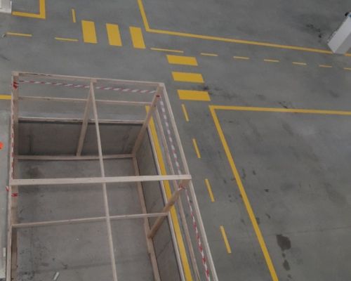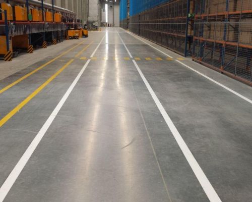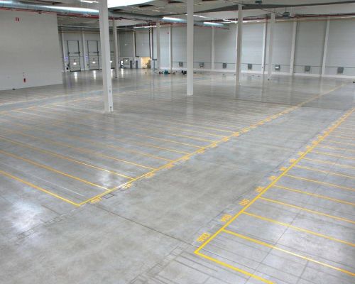 Bezpečnostné značenie v skladoch a na pracoviskách dopĺňame aj realizáciu podlah v skladoch – dokážeme nájsť to správne riešenie práve pre Vašu.