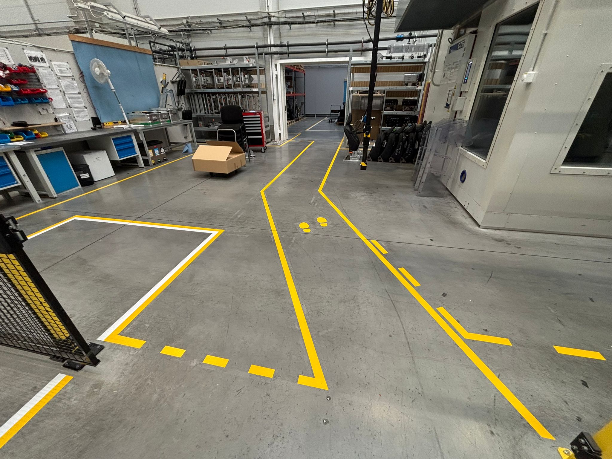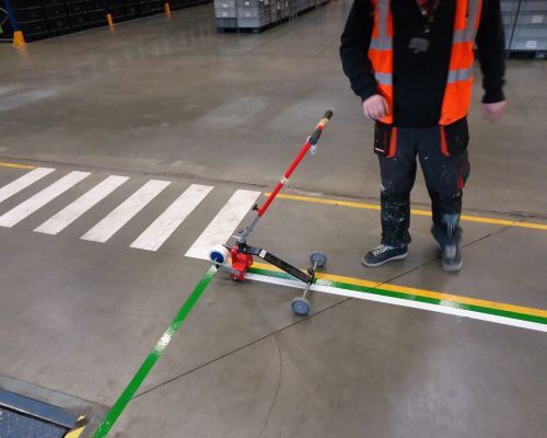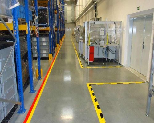 Značenie páskami má oproti náterom výhodu vo svojej rýchlej aplikácii a rýchle možnosti značenia zmeniť. Pri nábehu nových prevádzok odporúčame najskôr vykonať značenie páskou a až potom, čo sa značenie ukáže ako správne, pristúpiť k stálemu značeniu nátery. Ak si značenie vykonávate vlastnými silami, využite širokú ponuku našich podlahových pások na e-shope
