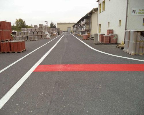To, že sme špecialisti na dopravné značenie znamená, že vieme, že značenie vonkajších plôch je v dennom režime výrobných a logistických areálov veľmi dôležité. Preto sa s veľkou starostlivosťou staráme o značenie parkoviska, navádzacie čiary k rampám a všetky ďalšie Vaše požiadavky na intuitívne značenie Vašich plôch.